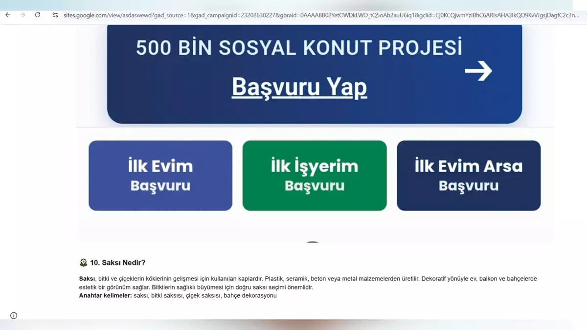 Çevre, Şehircilik ve İklim Değişikliği Bakanlığı ile TOKİ işbirliğinde yürütülen 500 bin sosyal konut projesi milyonlarca insana ev sahibi olma umudu doğurdu. Başvuruların 10 Kasım'da başlayacak olmasına rağmen dolandırıcılar, şimdiden vatandaşın ev hayaline göz dikti. e-Devlet ve TOKİ'nin web sayfalarını birebir kopyalayan şüpheliler, oluşturdukları bu sahte siteler üzerinden 'başvuru ücreti' adı altında para talep ediyor.
