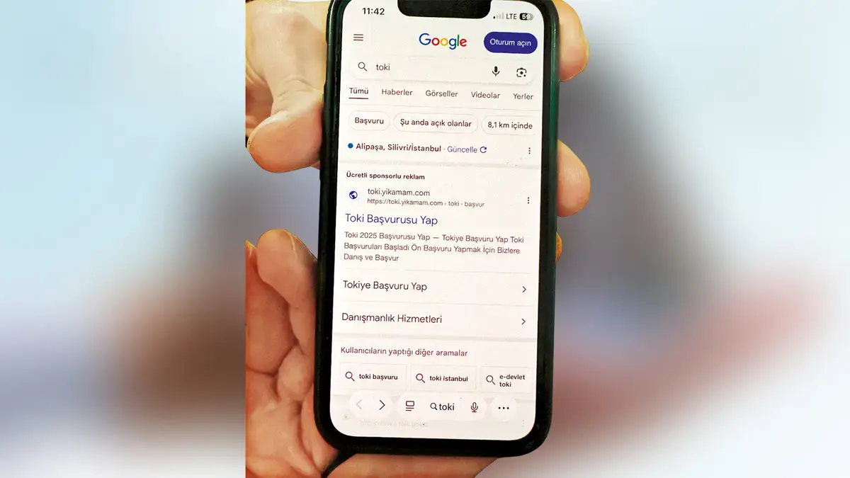 Google'da 'Toki' diye aratınca ilk sıralarda 'toki.yıkamam' adlı sahte sitenin yer aldığı görüldü.