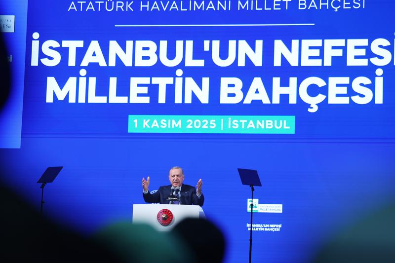 Atatürk Havalimanı Millet Bahçesi'nin açılışında konuşan Cumhurbaşkanı Erdoğan, 'Yeni millet bahçemizde şehrimize nefes aldıracak, İstanbul'un çehresini güzelleştirecek dev bir eseri daha milletimize kazandırmış olacağız. Herkes bilsin İstanbul bizim göz bebeğimizdir. Bir Fetret Devri'ne daha gönlümüz razı değil. İstanbulumuzu iş bilmez, kadir kıymet bilmez, tarih ve medeniyet şuurundan yoksun kifayetsizlerin insafına terk etmiyoruz.' dedi. Terörsüz Türkiye sürecine ilişkin mesajlar veren Cumhurbaşkanı Erdoğan, DEM heyetiyle umut verici bir görüşme yaptıklarını kaydetti. Cumhurbaşkanı Erdoğan, 'Türkiye'nin yarım asırlık meselesini çözmesini istemeyen odaklar, bilhassa da FETÖ'cü alçaklar operasyonlarına hız vermiş durumdalar.' ifadelerini kullandı.