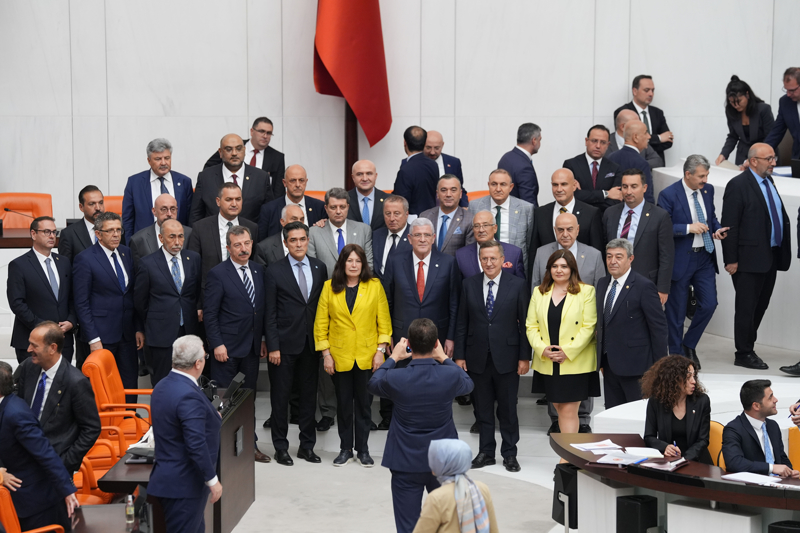 Kanun teklifinin görüşmelerinin son bölümünü CHP Genel Başkanı Özgür Özel, İYİ Parti Genel Başkanı Müsavat Dervişoğlu, DEM Parti Eş Genel Başkanı Tulay Hatımoğulları Oruç da izledi.
