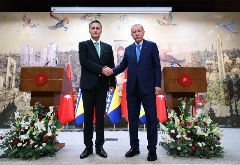 Erdoğan, bu yılın 7 ayında Bosna Hersek'i ziyaret eden turistler arasında Türk vatandaşlarının, komşu ülkeleri de geride bırakıp ilk sırada yer almasının sevindirici olduğunu vurgulayarak, "Ülkelerimiz arasında kimlikle seyahati mümkün kılacak anlaşmayı yakın zamanda imzalayarak, halklarımız arasındaki beşeri münasebetleri daha da geliştirmeyi hedefliyoruz. Askeri ve güvenlik alanlarındaki işbirliği de gündemimizde yer aldı. Özellikle savunma sanayisine yönelik işbirliğimizi nasıl ve ne denli geliştireceğimizi değerli kardeşimle ele aldık. FETÖ ile ortak mücadele bağlamındaki beklentilerimiz üzerinde durduk." diye konuştu.