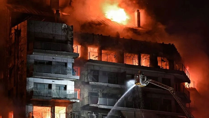 İspanya'nın Valencia kentinde bulunan Campanar Mahallesi'nde 14 katlı bir binada yangın çıktı. Yangın kısa sürede büyüyerek binayı sardı. Binada yaşayanlar, balkonlarda kurtarılmayı bekledi. Olay yerine çok sayıda itfaiye ve ambulans sevk edilirken, binanın karşısına yaralılar için sahra hastanesi kuruldu. Yetkililer, yangında 7 kişinin yaralandığını belirterek, çok sayıda kişinin kurtarıldığını açıkladı.