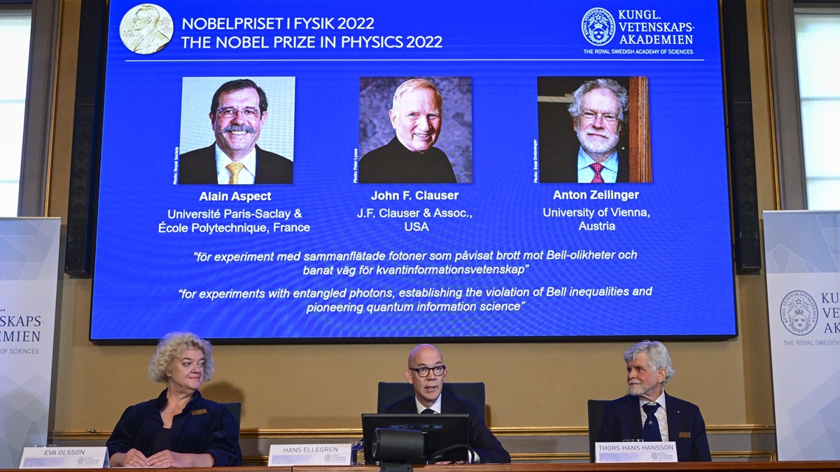 2022 Nobel Fizik Ödülü'nü kuantum mekanikleri konusundaki çalışmalarından ötürü Fransız fizikçi Alain Aspect, Amerikalı teorik ve deneysel fizikçi John F. Clauser ve Avusturyalı kuantum fizikçisi Anton Zeilinger kazandı.