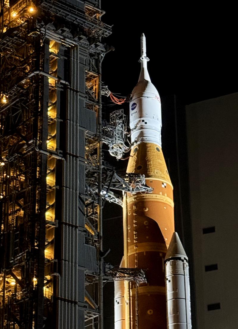 Görev için geri sayım sürerken NASA'nın Uzay Fırlatma Sistemi (SLS) roketi ve ilk insanlı uçuşunu gerçekleştirecek Orion uzay aracı, 20 Mart'ta ABD'nin Florida eyaletindeki Kennedy Uzay Merkezindeki fırlatma rampasına taşındı.