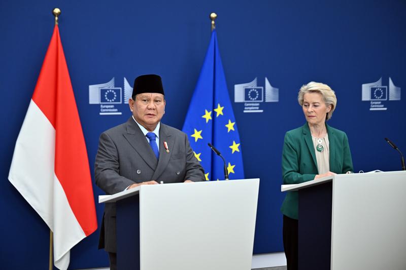 Von der Leyen, Brüksel'de Endonezya Cumhurbaşkanı Prabowo Subianto ile görüşmesinin ardından basına açıklamalarda bulundu.