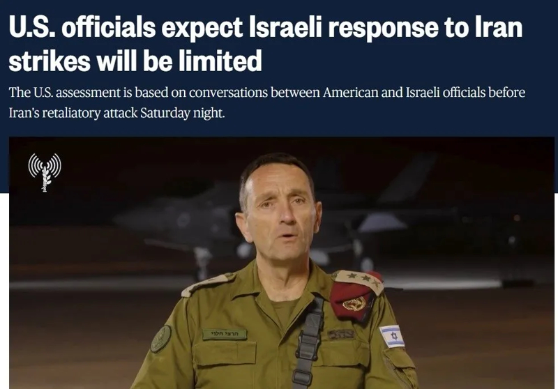 Öte yandan NBC, İsrail'in bölgedeki kaosu daha fazla tırmandırmaktan çekindiğini ve bu nedenle İsrail'in tepkisinin muhtemelen sınırlı olacağına inanıldığına vurgu yaptı. NBC, İsrail savaş kabinesinde "İran dışındaki önemli hedefleri vurmaya odaklanılacağı" kanısının baskın olduğuna dikkat çekti. ABD'li yetkililerin değerlendirmelerinin İran saldırısının öncesinde İsrailli yetkililerle yapılan görüşmelere dayandığını belirten NBC, İsrail'in yaklaşımının bundan sonra değişmiş olabileceği detayına da yer verdi. Tel Aviv'in İran'ın ciddi bir zarar vermemesinin İsrail'i daha az saldırgan bir yanıta itebileceğinin altının çizildiği haberde İsrail'in İran'ı doğrudan vurmak yerine Suriye'deki milisler veya Hizbullah gibi İran'ın vekillerini vurabileceğini iddia etti.