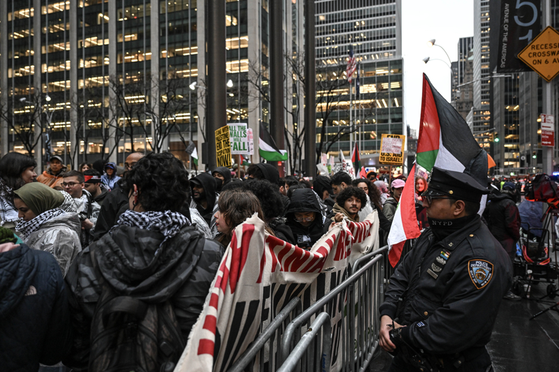 Filistin destekçileri, olağanüstü güvenlik önlemlerinin alındığı etkinlik alanında, Gazze'de acil ateşkes talep ederken, 2024 başkanlık yarışı çerçevesinde ön seçimlerin devam ettiği New York'ta Demokrat seçmene, sandıkta boş oy kullanarak tepki verme çağrısında bulundu.