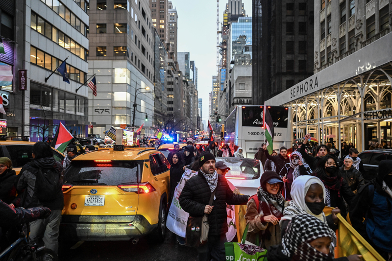 New York'taki ünlü gösteri merkezi Radio City Music Hall binası önünde toplanan yüzlerce sivil aktivist, Biden'ın Gazze'deki sivilleri öldüren İsrail'e verdiği destekten dolayı gösteri düzenledi.