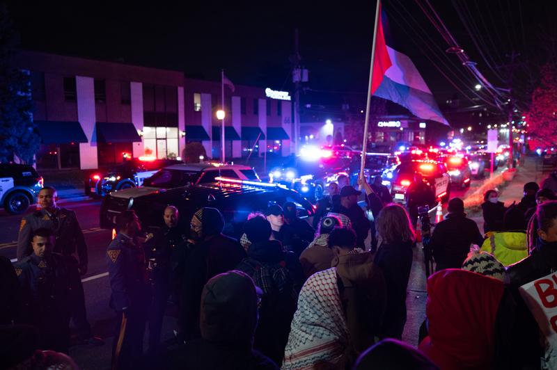 Eyaletin Livingston kasabasında Filistin'e destek veren göstericiler, bir sinagogda söyleşi programına katılan Gallant'ı protesto etmek üzere bir araya geldi.