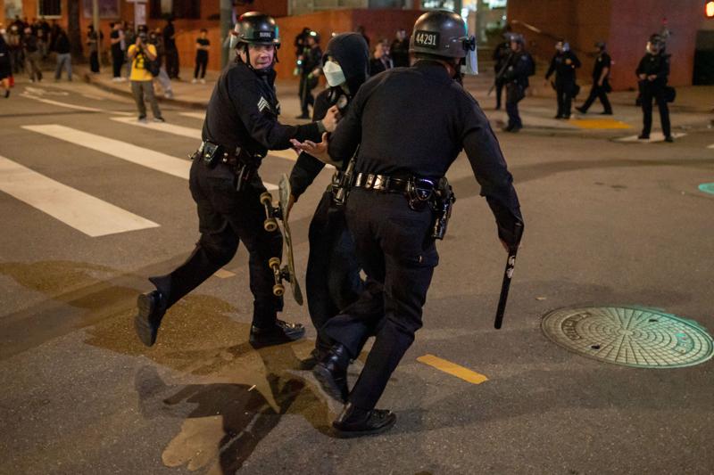 Polisin açıklamasında, Los Angeles şehir merkezinde düzenlenen protestoların ikinci gecesinde onlarca kişinin gözaltına alındığı ifade edildi.