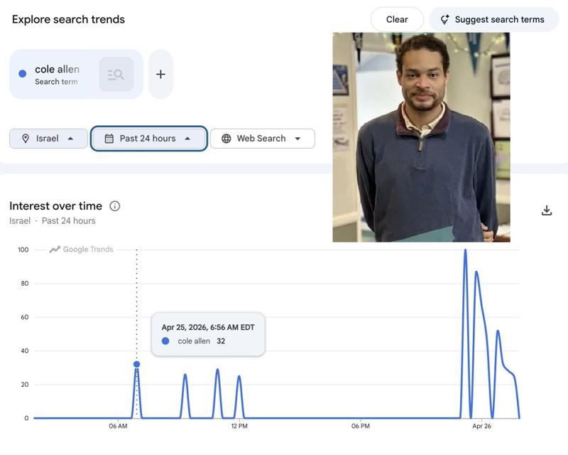 İSRAİL DETAYI: 12 SAAT ÖNCESİNE DİKKATİddialara göre şüpheli Cole Tomas Allen, saldırı girişiminden yaklaşık 12 saat önce İsrail'de internette en çok aratılan isimler arasında yer alıyordu. Bu dikkat çekici veri, saldırı girişiminin arkasında müttefik ülkelerin parmağı olup olmadığına dair soru işaretlerini ve spekülasyonları beraberinde getirdi.