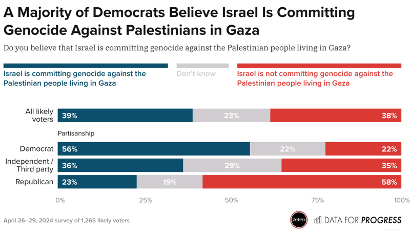 İsrail'in 7 Ekim'den bu yana sürdürdüğü saldırılara destek gün geçtikçe azalırken, ABD'li seçmenlerin "İsrail Gazze'de soykırım yapıyor" düşüncesi de her geçen gün daha çok destek buluyor.