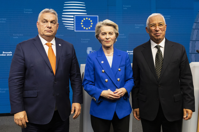 Yeni AB Konseyi Başkanı Antonio Costa, AB Konseyi Dönem Başkanı Macaristan'ın Başbakanı Viktor Orban ve AB Komisyonu Başkanı Ursula von der Leyen, zirvenin ardından ortak basın toplantısı düzenledi.