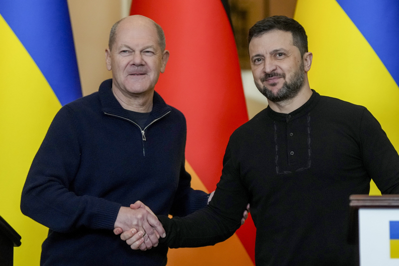 Scholz, temaslarda bulunmak üzere geldiği Ukrayna'nın başkenti Kiev'de, Ukrayna Devlet Başkanı Volodimir Zelenskiy ile bir araya geldi. Taraflar görüşmenin ardından düzenledikleri ortak basın toplantısında konuştu.