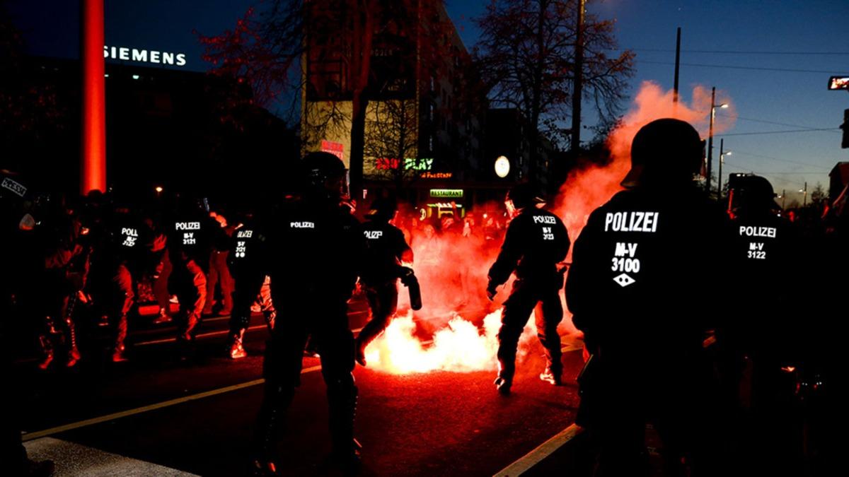 Alman basınındaki haberlere ve sosyal medyadaki görüntülere göre, polisin "dağılın" çağrılarına kulak asmayan, maske ve mesafe kurallarına uymayan göstericiler polise saldırdı.