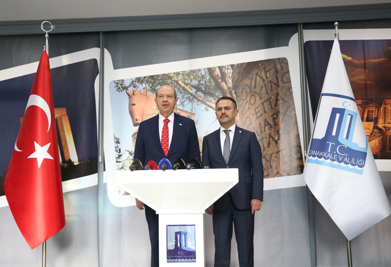 Cumhurbaşkanı Tatar, Çanakkale Valiliğini ziyaretinde, Vali İlhami Aktaş ile polis tören mangası tarafından karşılandı. Öğrencilerin çiçek takdim ettiği Tatar, Valilik Şeref Defteri'ni imzaladı.