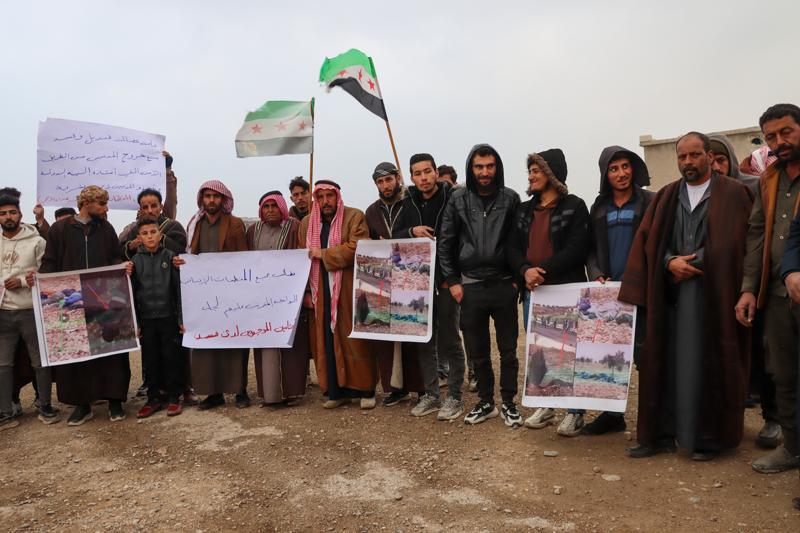 Suriye'de YPG'nin öldürdüğü sivillerin aileleri, yakınlarının naaşlarının teslim edilmesi için gösteri düzenledi.