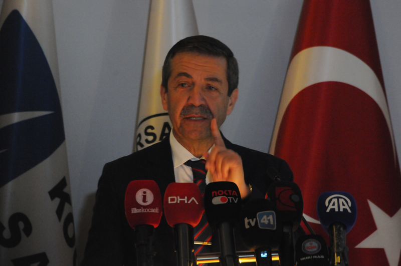 Kocaeli Sanayi Odası meclis toplantısının konuk konuşmacıları KKTC Dışişleri Bakanı Tahsin Ertuğruloğlu ve Ekonomi ve Enerji Bakanı Olgun Amcaoğlu oldu. Toplantıda konuşan Bakan Amcaoğlu, "Bu saatten sonra Kuzey Kıbrıs Türk Cumhuriyeti, Türkiye Cumhuriyeti yatırımcısı, yabancı uyruklu yatırımcı diye bir şey söz konusu değil. Hem gönül kapılarımız, hem ülkemizin kapıları artık imzalarla, protokollerle ve mevzuatlarla sizlere açılmış durumda" dedi. Bakan Ertuğruloğlu ise "İçerisinde Rum'un olduğu ki olmaması gerekir, Yunanistan'ın olduğu ama Türkiye'nin olmadığı bir Avrupa Birliği'ne gitmek bizim için intihar demektir; orada bitirirler bizi. Bizim gücümüz ana vatanımızın gücü kadardır" dedi. Kocaeli Sanayi Odası (KSO) Şubat ayı meclis toplantısı bugün İzmit ilçesinde bulunan KSO meclis toplantı salonunda gerçekleştirildi. Kuzey Kıbrıs Türk Cumhuriyeti (KKTC) Dışişleri Bakanı Tahsin Ertuğruloğlu ve Ekonomi ve Enerji Bakanı Olgun Amcaoğlu'nun konuk konuşmacı olduğu meclis toplantısında KSO Başkanı Ayhan Zeytinoğlu, Kocaeli Valisi Seddar Yavuz ile sanayiciler ve davetliler hazır bulundu.