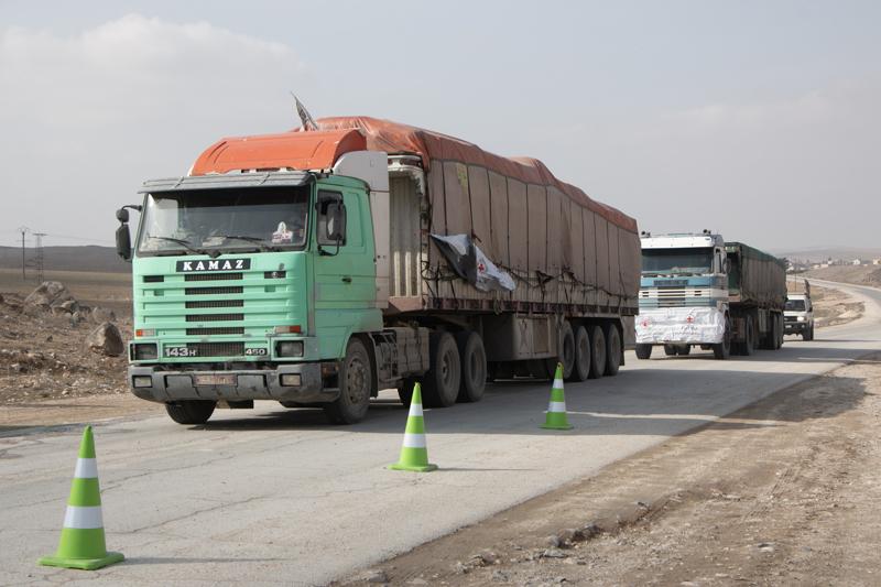 Suriye devlet televizyonu SANA'da yer alan habere göre, Halep Acil Müdahale Merkezi Komitesi, Suriye Kızılayı ve Uluslararası Kızılhaç Komitesi tarafından gönderilen yardım konvoyu Halep'ten yola çıktı.