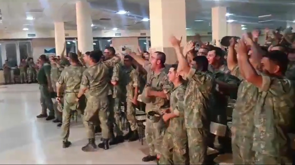 Paylaşılan görüntülerde, Türkiye-Çekya maçını heyecanla takip eden Azerbaycan askerlerinin, maçın son dakikalarında Türkiye'nin attığı galibiyet gölüyle büyük coşku yaşadığı görüldü.