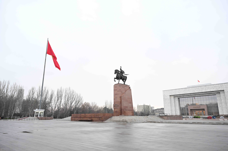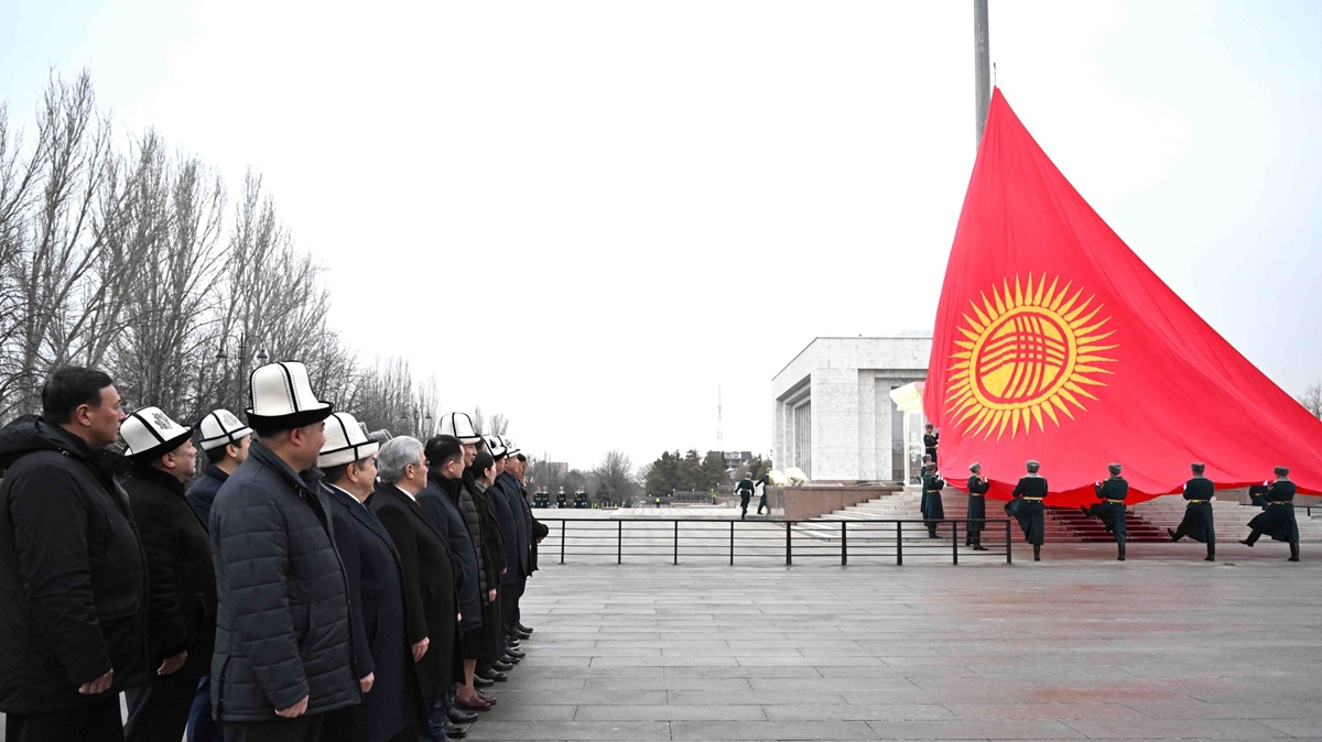 Meclis Başkanı Nurlanbek Şakiyev ve Bakanlar Kurulu Başkanı Akılbek Caparov'un katılımıyla Ala-Too Meydanı'nda tasarımında değişiklik yapılan ülke bayrağını göndere çekme töreni düzenlendi.