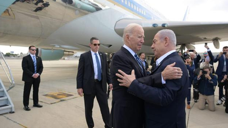 Biden, "Bugün burada bulunmamın basit bir nedeni var; İsrail halkı ve dünyadaki herkesin ABD'nin nerede durduğunu bilmesi. Dışişleri Bakanı (Antony) Blinken da burada. Buraya birkaç kez geldi. Ama ben şahsen gelmek istedim." dedi.
