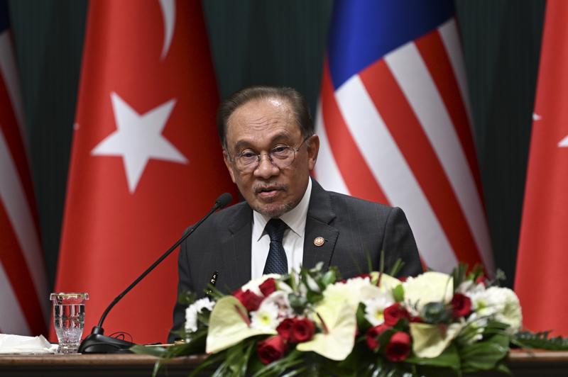 Türkiye'yi ziyaret eden Malezya Başbakanı Enver, Cumhurbaşkanı Recep Tayyip Erdoğan ile Cumhurbaşkanlığı Külliyesi'nde görüşmesinin ardından düzenlenen ortak basın toplantısında konuştu.