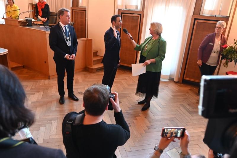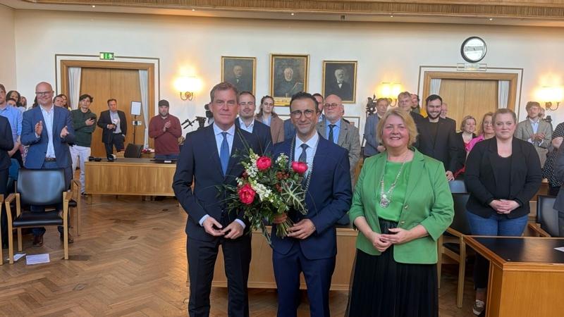 Almanya'nın Schleswig-Holstein eyaletinin başkenti Kiel'de tarihi bir gün yaşandı. Keil'de 7 Aralık'ta yapılan seçimde Belediye Başkanlığı'na seçilen Dr. Samet Yılmaz için yemin töreni düzenlendi. Kiel tarihinde ilk kez göçmen bir başkan olarak seçilen Yılmaz, dün belediye binasında gerçekleştirilen törende Belediye Meclis Başkanı Bettina Aust huzurunda yemin ederek görevine resmen başladı.