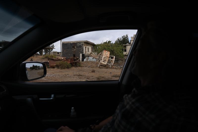 İsrail askeri araçları, köydeki kontrol noktalarında içinde asker olmadan duruyor. Ayrıca, köy merkezindeki terkedilmiş Birleşmiş Milletler gözlem noktası, savaş sırasında büyük zarar görerek yıkılmış durumda bulunuyor.