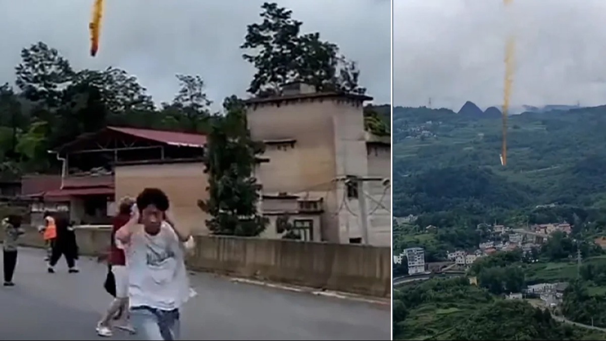 Sosyal medyada yer alan görüntülerde, roketin Cumartesi günü Çin'in güneybatısındaki bir köyün yakınına düştüğü ve parlak sarı bir duman sızdırdığı görülüyor.