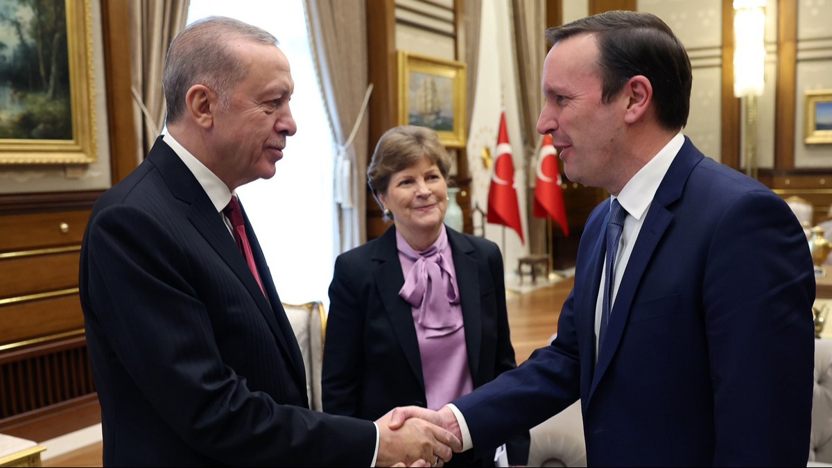 Cumhurbaşkanı Erdoğan, ABD'li Senatörler Jeanne Shaheen ve Chris Murphy'i Cumhurbaşkanlığı Külliyesi'nde kabul etti.