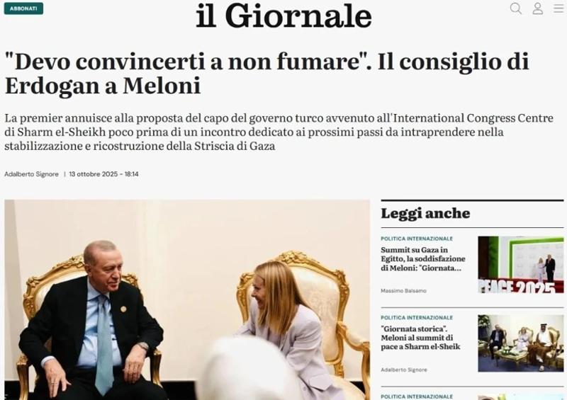 Rus TASS ajansı ise Erdoğan'ın Meloni'yi "kendine özgü, yarı şakacı bir tonla uyardığını" yazarken, Hırvat Index portalı Meloni'nin yıllar önce sigarayı bıraktıktan sonra yeniden içmeye başladığını hatırlattı.