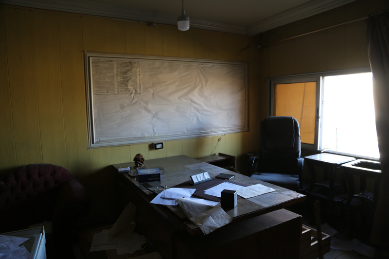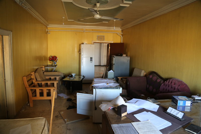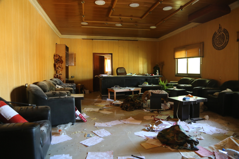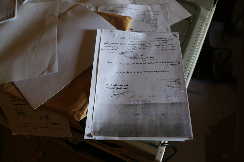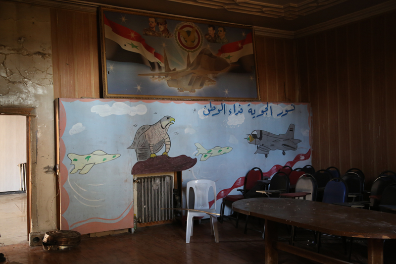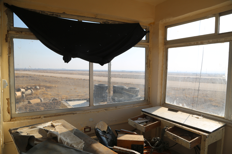 Rejim askerlerinin gözetim kulesi olarak kullandığı düşünülen yapının da yer aldığı havaalanındaki ofislerde çeşitli resmi evrakların dağınık şekilde bırakıldığı görülüyor.