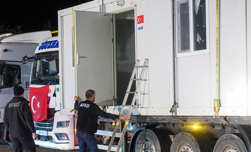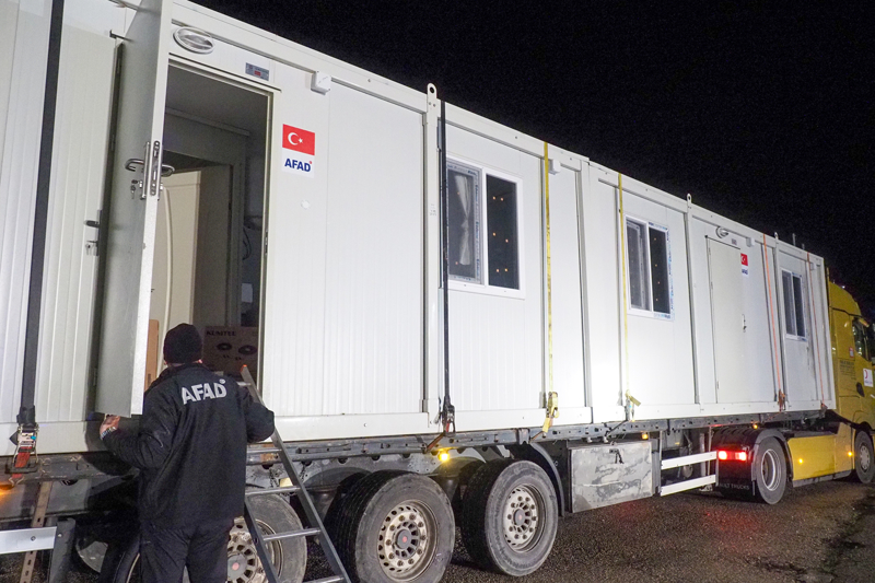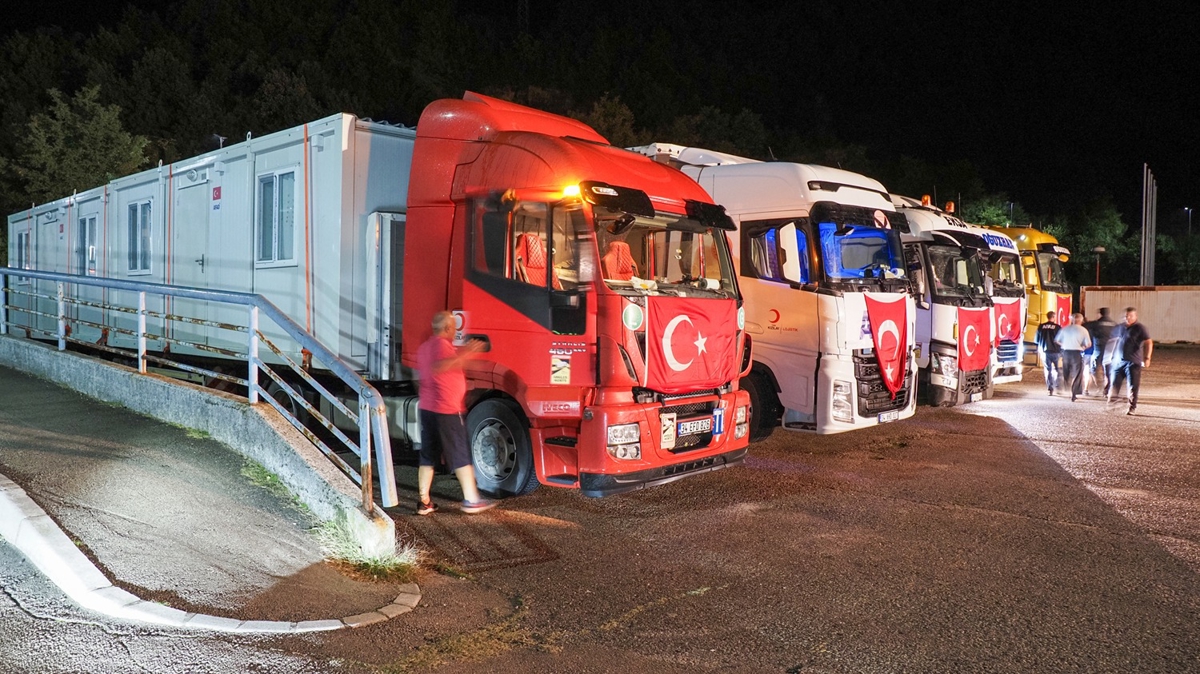 Bosna Hersek'teki sel felaketinin ardından Türkiye'den gönderilen konteyner evleri taşıyan 5 tır, afet bölgesine ulaştırıldı.