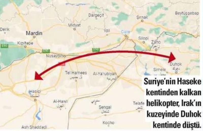 Washington merkezli Al Monitör sitesi 'bölgesel bir istihbarat kaynağı'na dayandırarak, "Helikopterler Haseke'den Kürdistan Yurtseverler Birliği'nin (KYB-Talabani'nin partisi) kontrolündeki Süleymaniye'ye gidiyordu. Türk radarlarından kaçınmak için çok alçaktan uçuyorlardı. Son üç gündür hava koşullan çok kötüydü ve muhtemelen zayıf görüş nedeniyle kaza meydana geldi" bilgisine yer verdi.