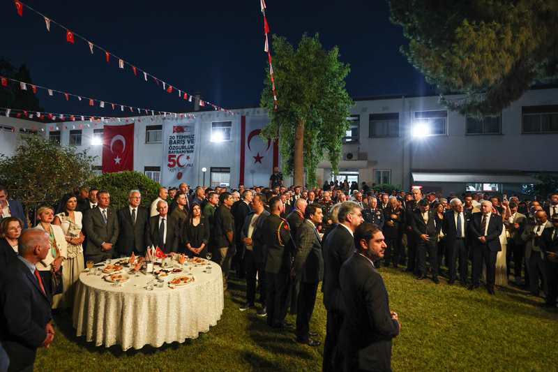 KKTC Cumhuriyet Meclisi Başkanı Zorlu Töre ve eşi Emel Töre, Kıbrıs Barış Harekatı'nın 50. yıl dönümü dolayısıyla resepsiyon düzenledi.