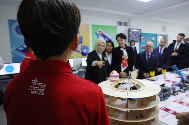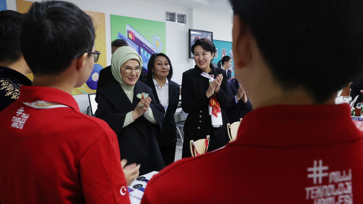 "Kırgızistan Devlet Başkanının değerli eşi Aygül Caparova ile Bişkek'te Türkiye Maarif Vakfı Eğitim Kompleksi'ni ziyaret ettik. Derslikleri gezerek, bilim, teknoloji, sanat ve kültür başta olmak üzere her alanda verilen dört dilli eğitim hakkında bilgi aldık. Bu eğitim yuvası, Kırgız çocuklarımızın bilgiyle güçlenip hayallerini gerçekleştirebilecekleri bir kapı aralıyor. Ortak temennimiz eğitimle büyüyen, değerlerle yoğrulan nesillerin; hem kendi ülkelerine hem de Türk dünyasına fayda sağlayacak ışık dolu birer rehber olmaları. Geleneksel Kırgız ezgilerini tüm içtenlikleriyle seslendiren çocuklarımız, gözlerimizde dostluğun ve kardeşliğin izlerini yeniden canlandırdı. Bu özel ziyaret vesilesiyle projeleriyle ülkelerini TEKNOFEST'te gururla temsil eden öğrencilerimizle tanışmaktan da ayrıca memnuniyet duydum. Başarılarının devamını diliyorum."