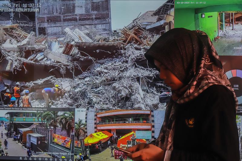 Eyaletin Sidoarjo kasabasında izinsiz şekilde iki yeni kat yapılmaya başlanan yatılı okul binasının 29 Eylül'de çökmesinin ardından enkaz alanında arama kurtarma çalışmaları devam ediyor.