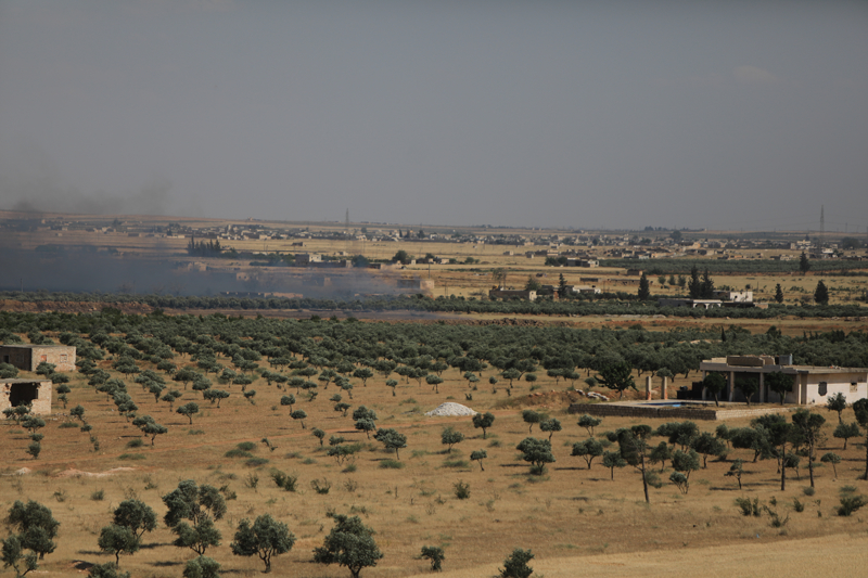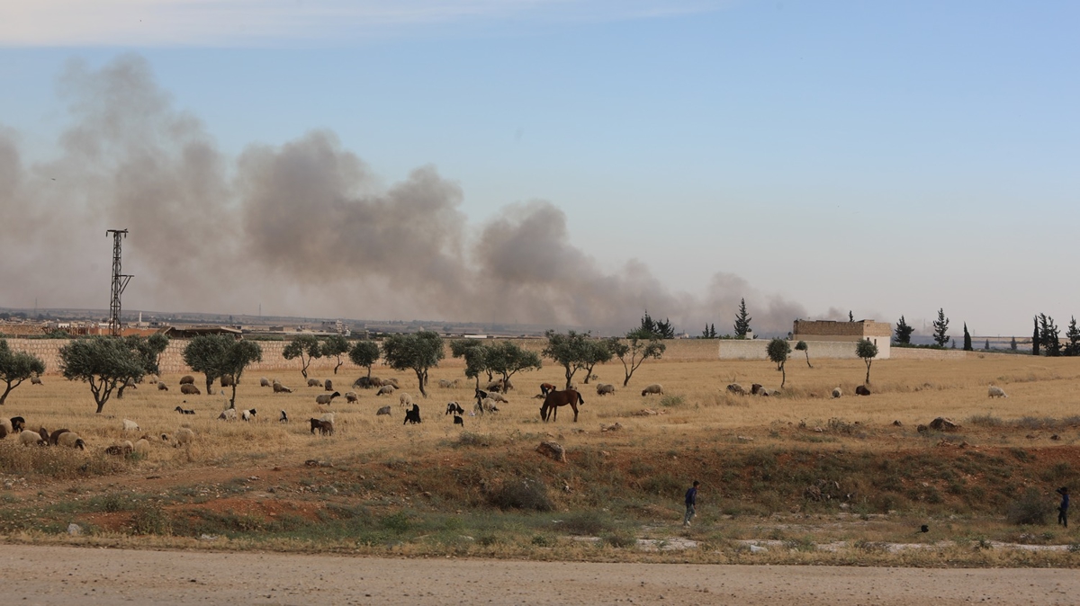 Tadifli Abdulkerim İbrahim, AA muhabirine, "Dün gece saatlerinde rejim askerleri, tarım arazilerini ve evleri yakmaya başladı. Onlar, bizim evlerimiz, 7 yıldır giremiyoruz. Geldik burada evlerimizin, arazilerimizin yanışını izliyoruz." dedi.