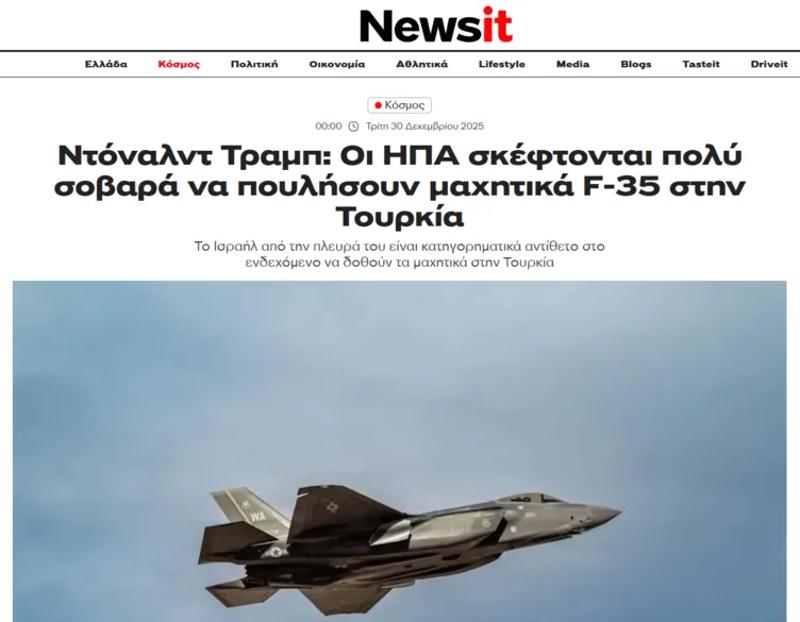 Yunanistan merkezli Newsit ise ABD'nin Türkiye'ye F-35 satışı ihtimalini ciddi şekilde değerlendirdiğini, İsrail'in ise bu olasılığa kesin olarak karşı çıktığını aktardı.