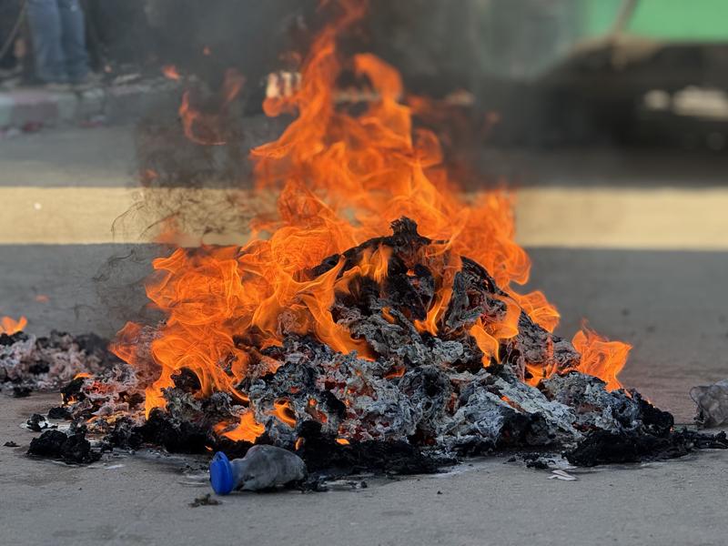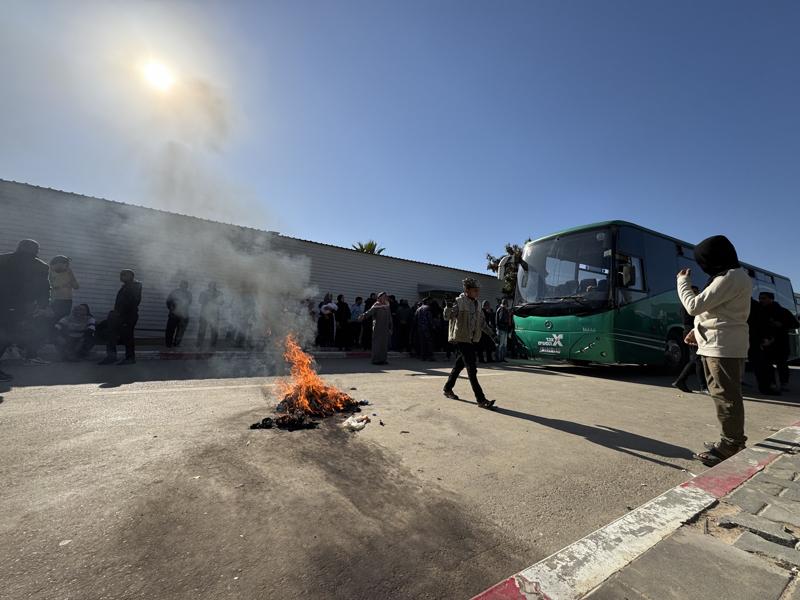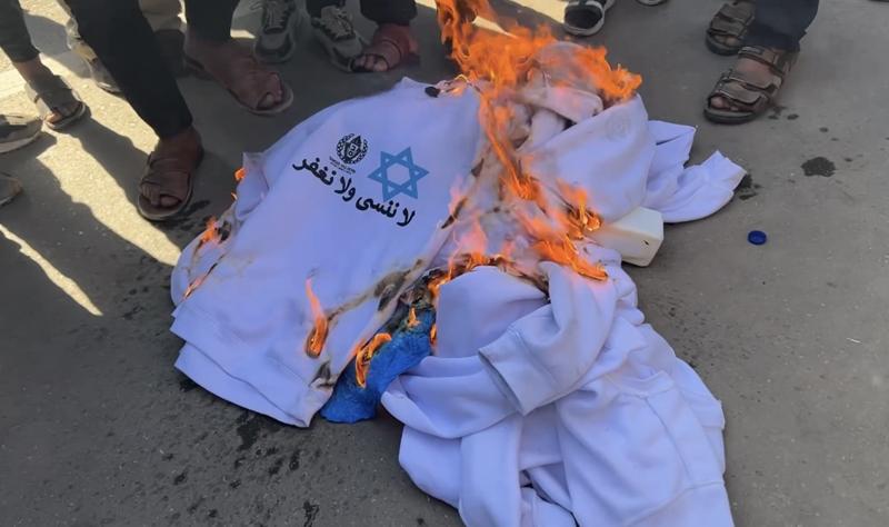 Serbest bırakılmalarının ardından Gazze Şeridi'nin güneyindeki Han Yunus kentine ulaşan Filistinli esirler, Avrupa Hastanesi avlusunda bu kıyafetleri çıkarıp yaktı.