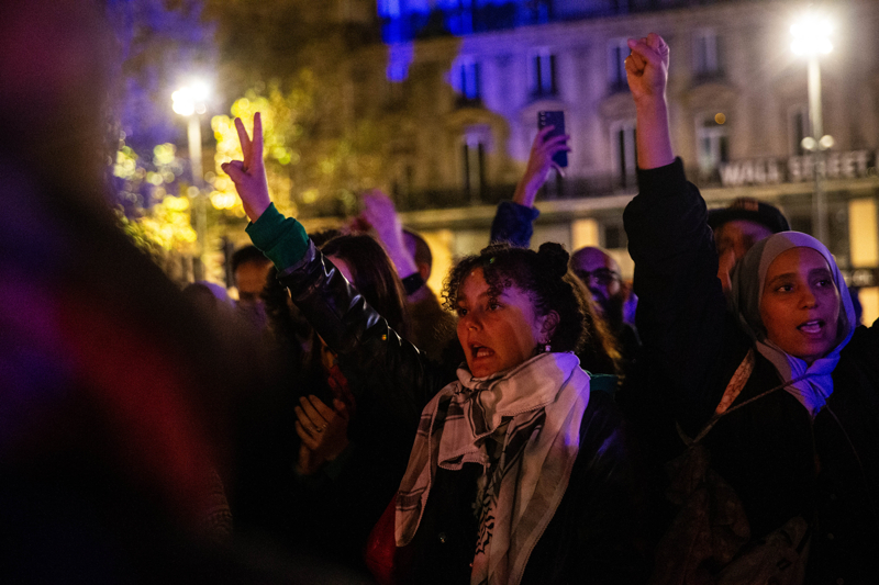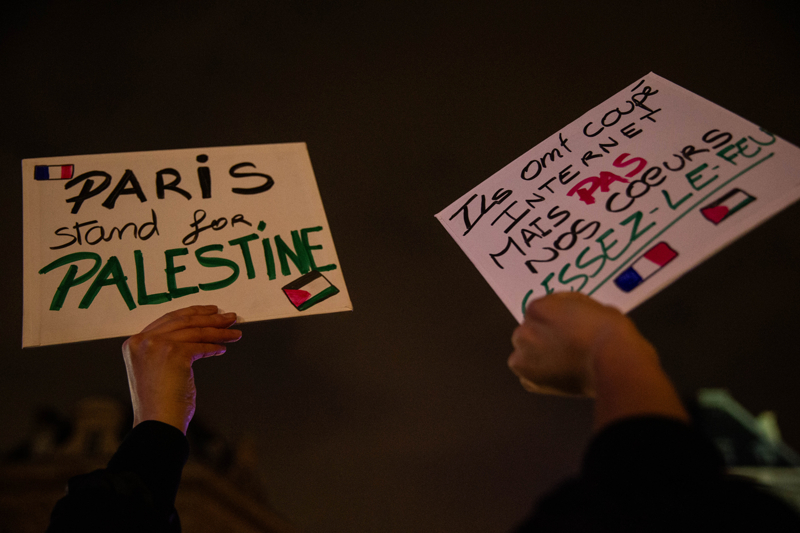 Paris Valiliği daha önce Filistin için düzenlenecek gösterileri yasaklamış, fakat Cumhuriyet Meydanı'nda toplanan 30 binden fazla kişi Filistin'e destek için gösteri düzenlemesine engel olamamıştı