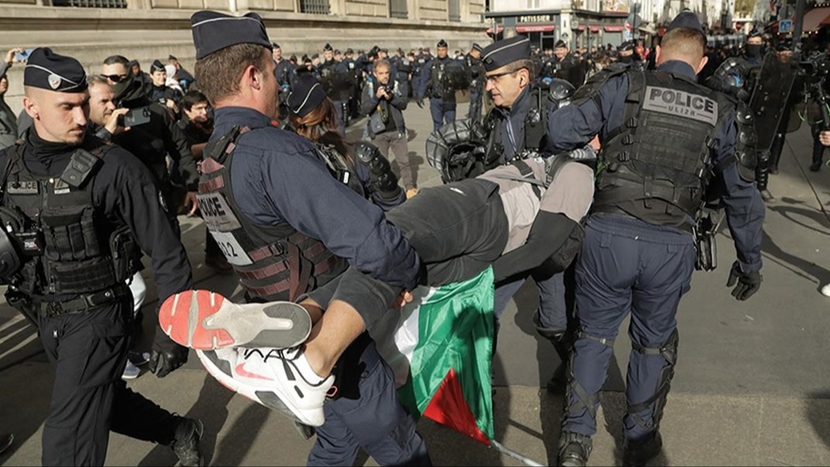 Paris'te emniyet müdürlüğünün yasağına rağmen Filistin'e destek gösterisi düzenlendi.