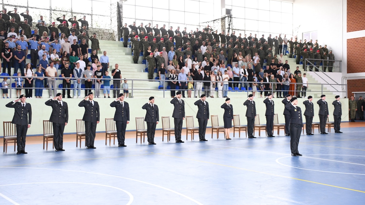 Kosova'nın başkenti Priştine'deki Adem Jashari Kışlası'nda gerçekleştirilen törene Savunma Bakanı Ejup Maqedonci'nin yanı sıra çeşitli ülkelerin askeri temsilcileriyle mezunların aileleri katıldı.