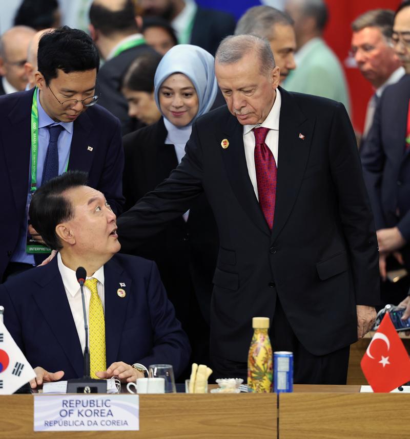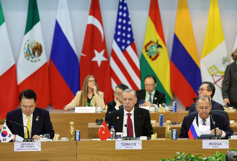 Erdoğan, zirvede Güney Kore Devlet Başkanı Yoon Suk Yeol ve Rusya Dışişleri Bakanı Sergey Lavrov ile yan yana oturdu.