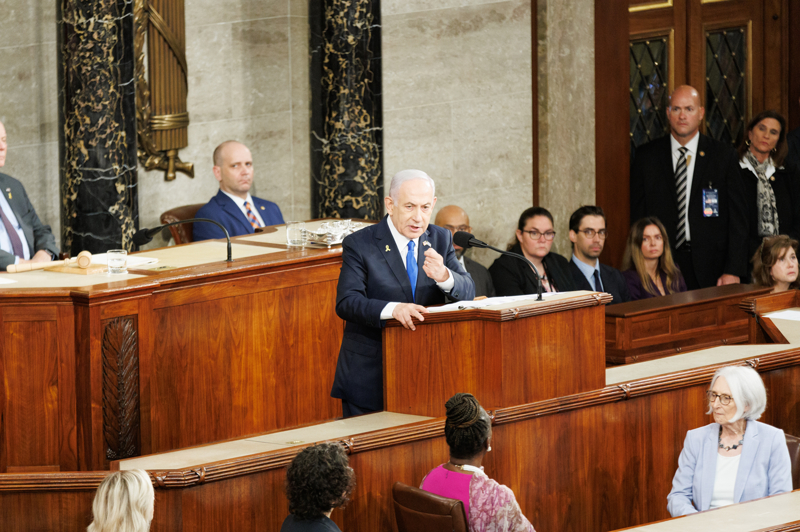 ABD Kongresinin Filistin asıllı tek temsilcisi Rashida Tlaib de Netanyahu'nun Kongre salonunda ayakta alkışlanmasına, "Ben de oradaydım ve bu iğrençti." ifadesiyle tepkisini göstermiş, Netanyahu'nun konuşması boyunca elinde "savaş suçlusu" yazan küçük bir döviz tutmuştu.