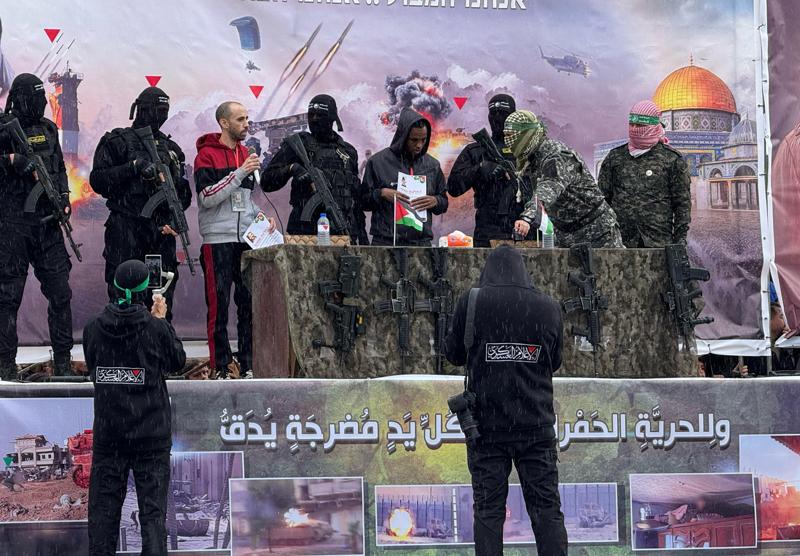 Hamas, Gazze'de ateşkes ve esir takası anlaşması kapsamında bugün serbest bırakılacak hayattaki 6 İsrailli erkek esirden 3'ünü daha Nusayrat Mülteci Kampı'nda Uluslararası Kızılhaç ekiplerine teslim etti.