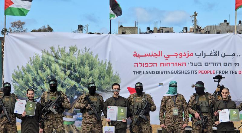 Hamas'ın silahlı kanadı İzzeddin el-Kassam Tugaylarının, esir takasının yapıldığı platformda silahların namlularını aşağı yönde tutması İsrail toplumuna yönelik sembolik bir mesaj olarak değerlendirildi.