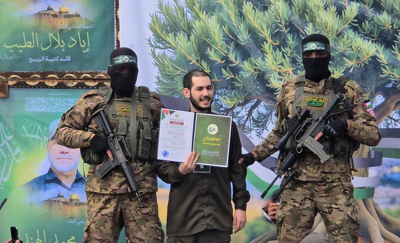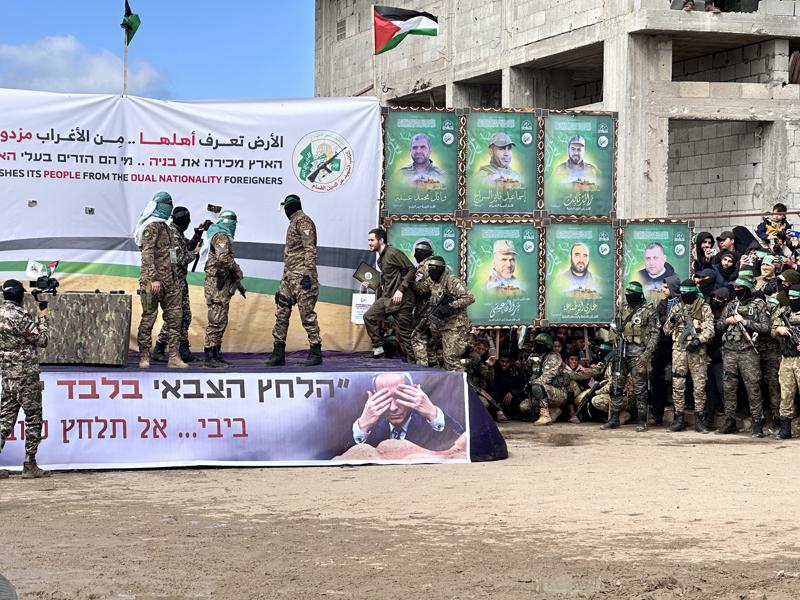 Öte yandan İsrailli 3 esir platformda Gazze Şeridi sakini Filistinlileri, Kassam Tugayları mensuplarıyla birlikte zafer işareti yaparak selamladı.