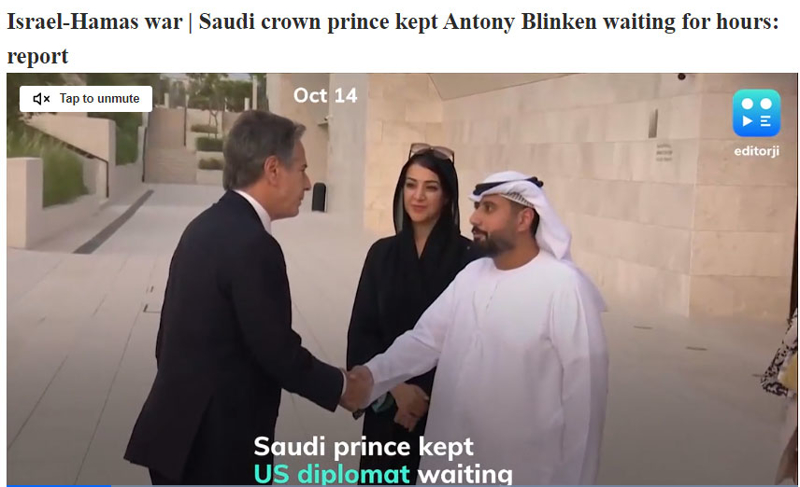 İsrail'le normalleşme görüşmelerini askıya aldığını duyuran Suudi Arabistan, Blinken'ı beklemeye aldı. Suudi Arabistan Veliaht Prensi Muhammed Bin Selman kendisiyle görüşmek isteyen ABD Dışişleri Bakanı Antony Blinken'ı saatlerce bekletti. Akşam gerçekleşmesi beklenen toplantı bu nedenle ancak ertesi sabah gerçekleştirilebildi.